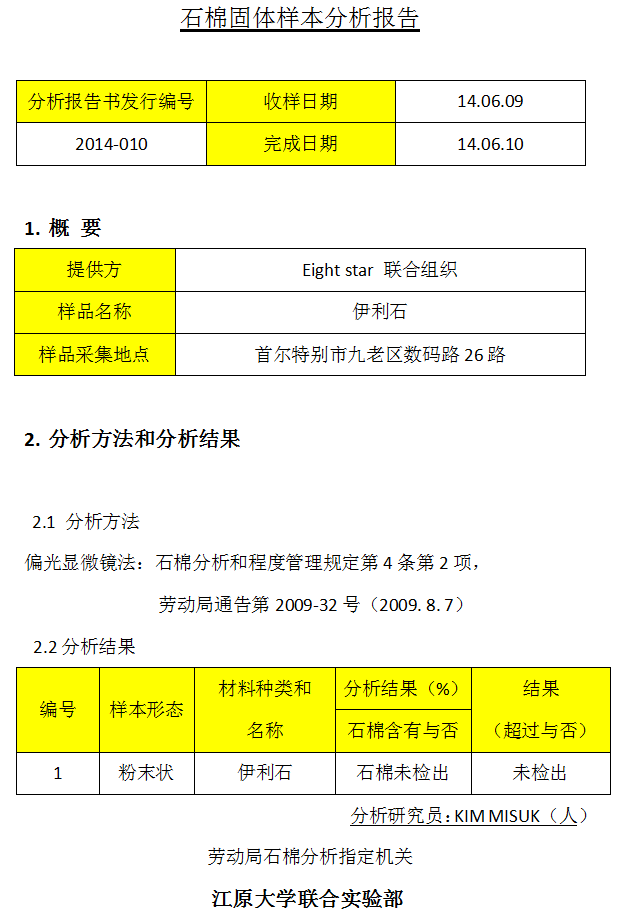 石棉固体样本分析报告