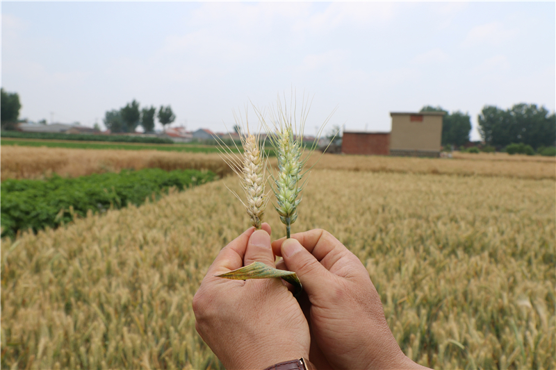 左侧为秋季小麦,未使用‘真佳味’; 右侧为春季小麦,使用2次‘真佳味’